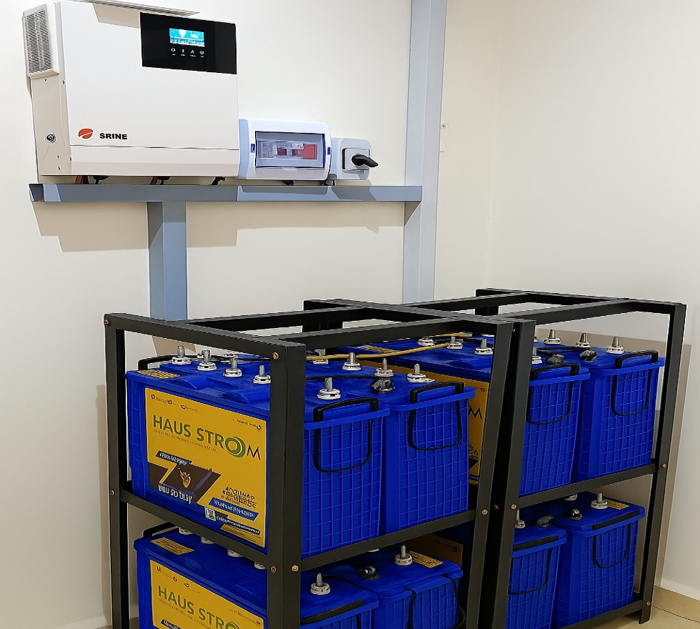On the roof, we built robust sub-arrays with correct spacing for heat dissipation and access. DC cabling was run in UV-stable trunking with safe drip loops, and all junctions were labelled. Inside, we installed the inverter, battery stacks, protection panels, and a dedicated maintenance clearance zone. We reworked earthing to reduce impedance and implemented surge protection at strategic points in the system.